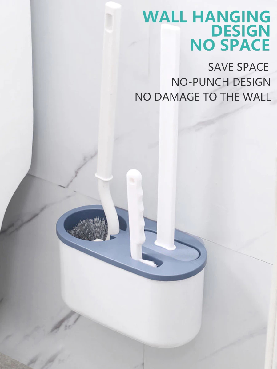 Toilet Brush 3 in 1 Set Wall-mounted Multifunction Silicone Bathroom Cleaning Brush With Holder